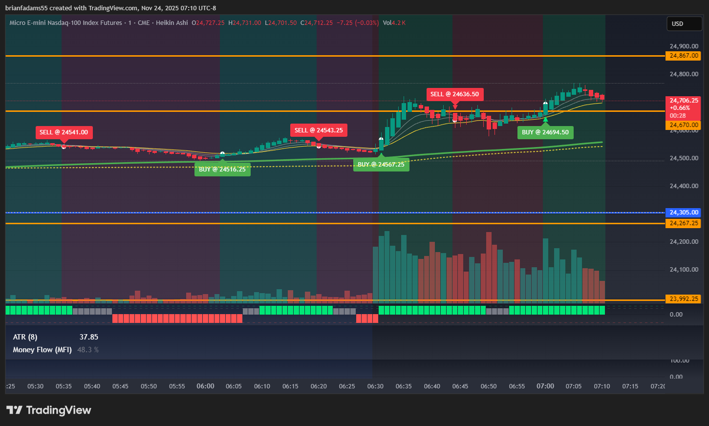 Snapshots from real trades using Quantum Navigator’s NQ and ES indicators.